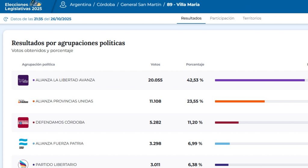 Villa María: La Libertad Avanza obtuvo el 42% de los votos, superando por 20 puntos a la lista de Schiaretti